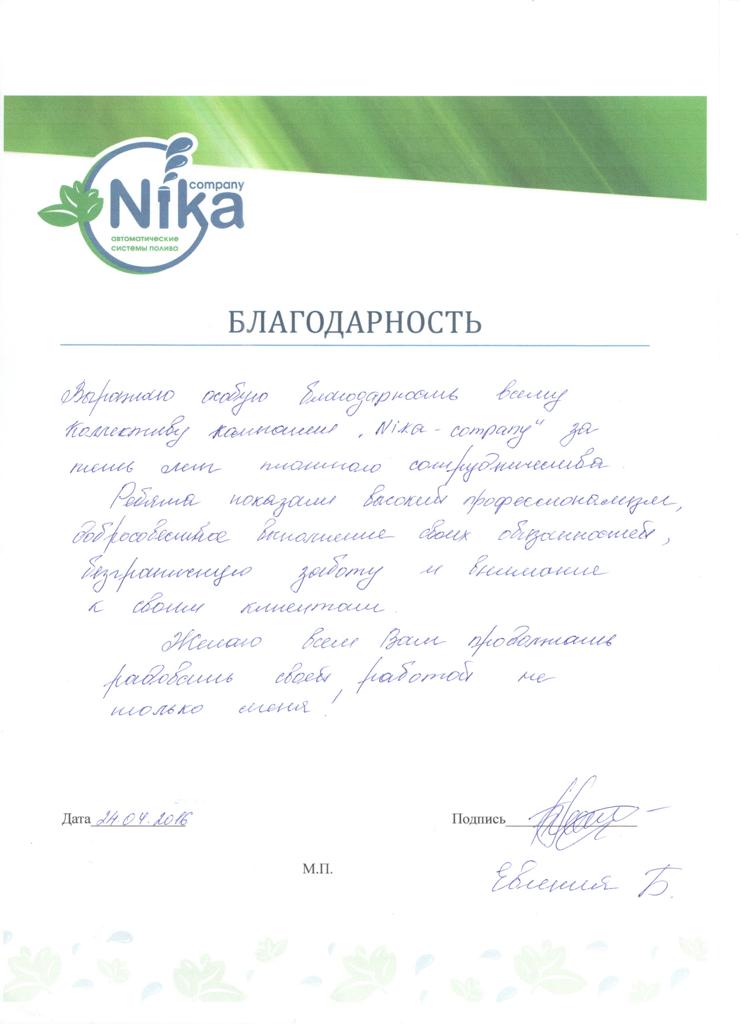 "Nika Poliv" это отдельное подразделение компании "Атмосфера-Юг" специализирующиеся на системах автоматического полива